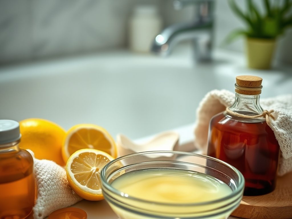 - Maseczka z aloesem: 2 łyżki miąższu aloesowego, 1 łyżka soku z cytryny – nałóż na 20 minut na przebarwione miejsca.